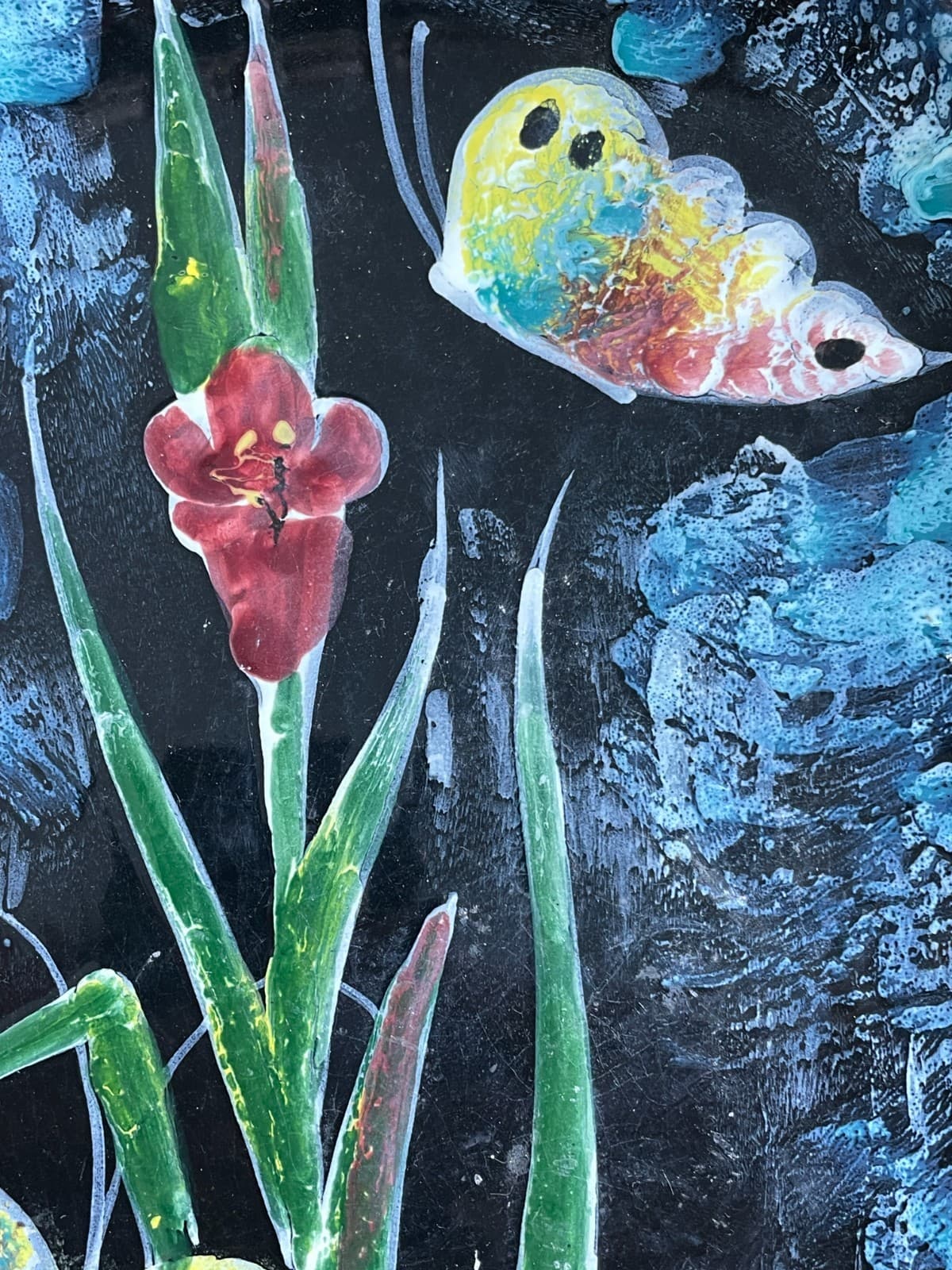 Ceramica Decorativa Floreale: Fiori E Farfalle. Vassoio Pubblicitario The Lipton