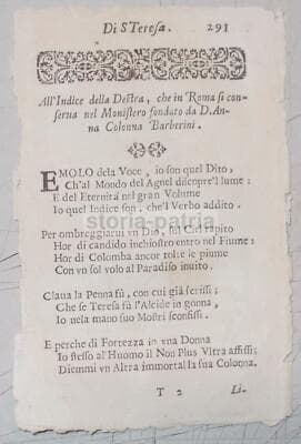 Agiografia: Stampa Popolare Devozionale Di Santa Teresa E La Guarigione Dalla Peste (XVII Secolo)
