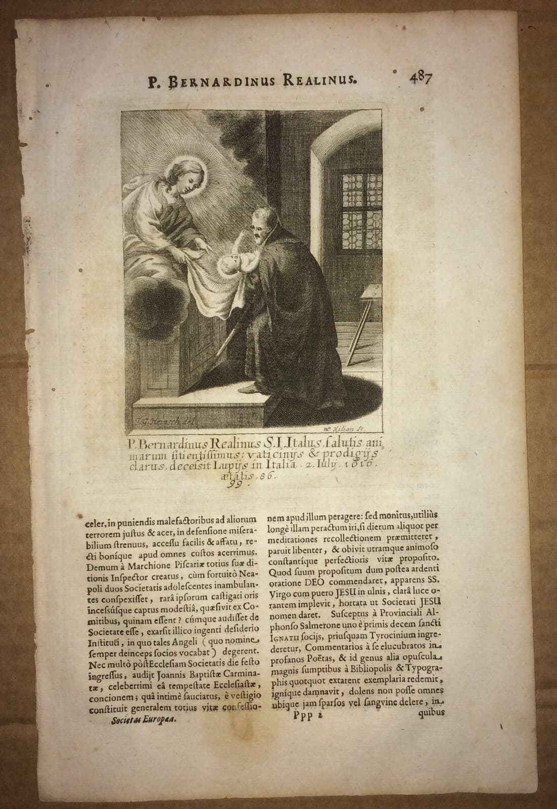 Gesuiti: Bernardino Realino, Carpi, Lecce. Antica Incisione Di Kilian E Heinsch