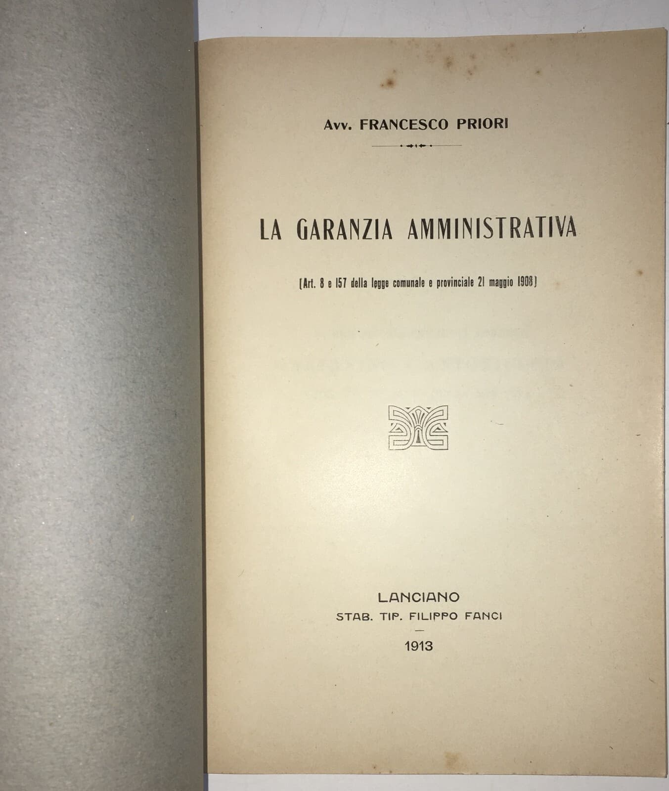 Abruzzo. Torino Di Sangro. Lanciano. Giuridica. Garanzia Amministrativa. Priori. 1913.