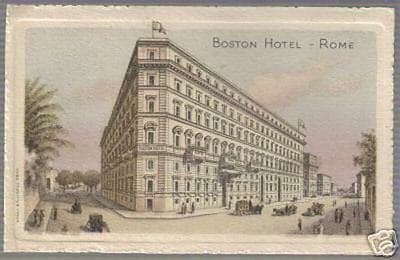 Roma Hotel Boston Cartoncino Pubblicitario d'Epoca