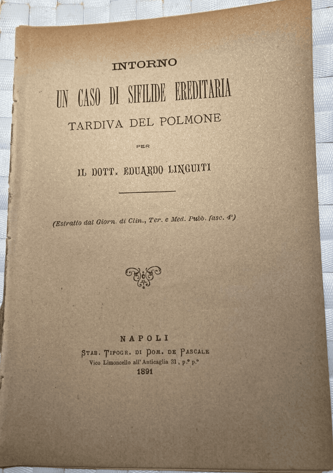Medicina, Chirurgia, Sifilide Ereditaria: Linguidi, De Renzi. Pesaro, Napoli, 1891