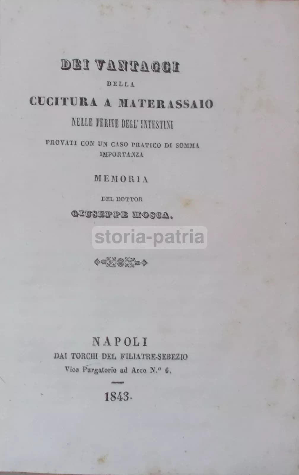 Medicina: Chirurgia Dell'Addome, Sutura, Cucitura A Materassaio, Napoli, Puglia, 1843