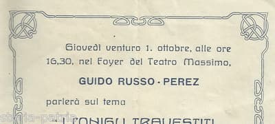 Sicilia, Palermo, Teatro Massimo: Conferenza Russo Perez "I Conigli Travestiti"