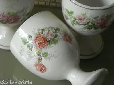 Antico Porta Uovo In Porcellana Con Decoro Floreale Policromo
