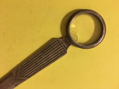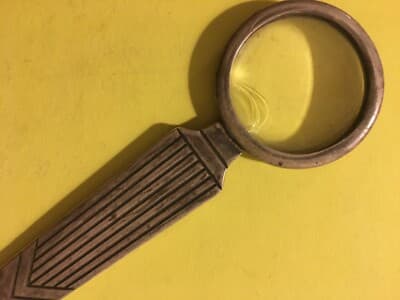 Oggetti Da Scrittoio: Sfogliacarte Con Lente d'Ingrandimento In Argento 800