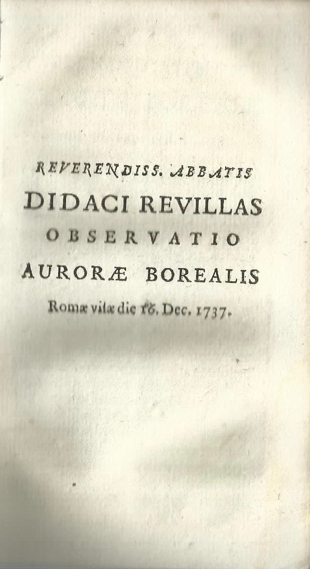 Fisica, Astronomia, Meteorologia. Roma: Aurora Boreale Del 1737, Revilla. Rarità Del Settecento