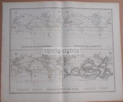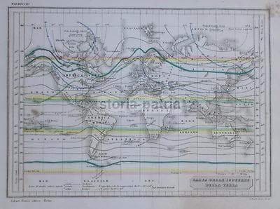 Climatologia Terrestre: Isoterme, Planisfero, Antica Cartografia America Europa, '800