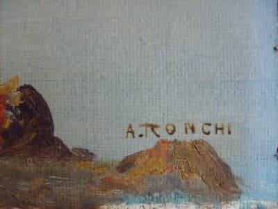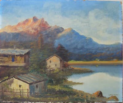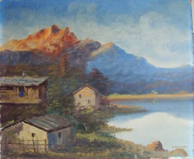 Paesaggio Montano Con Lago, Arnaldo Ronchi, Olio Su Faesite, Anni '30