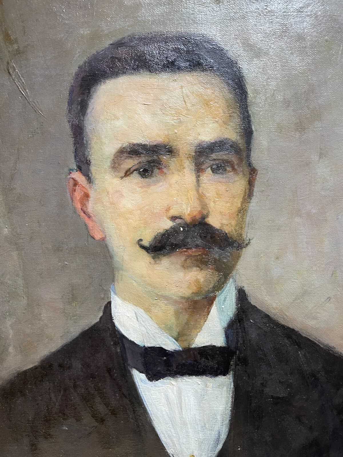Arte: Pittura, Antico Ritratto Maschile. Uomo Con Baffi, Opera Firmata