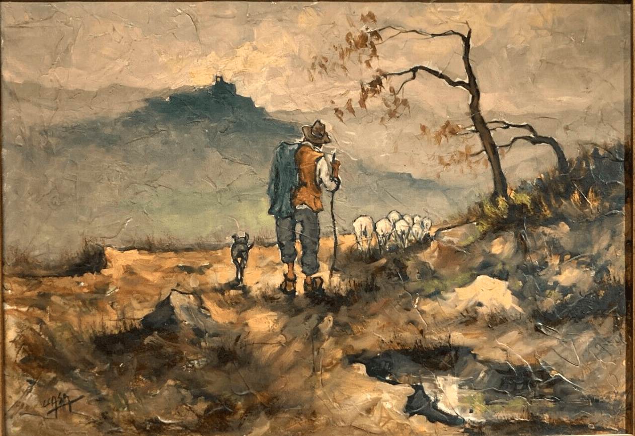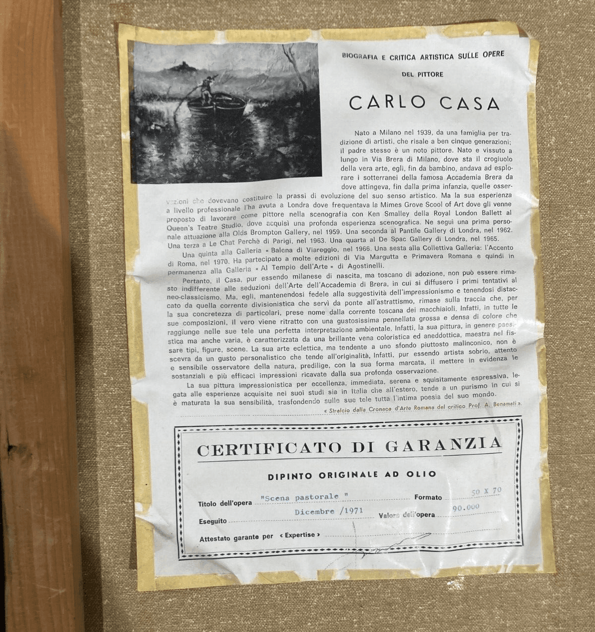 Carlo Casa, Scena Pastorale, Olio Su Tela, 1971
