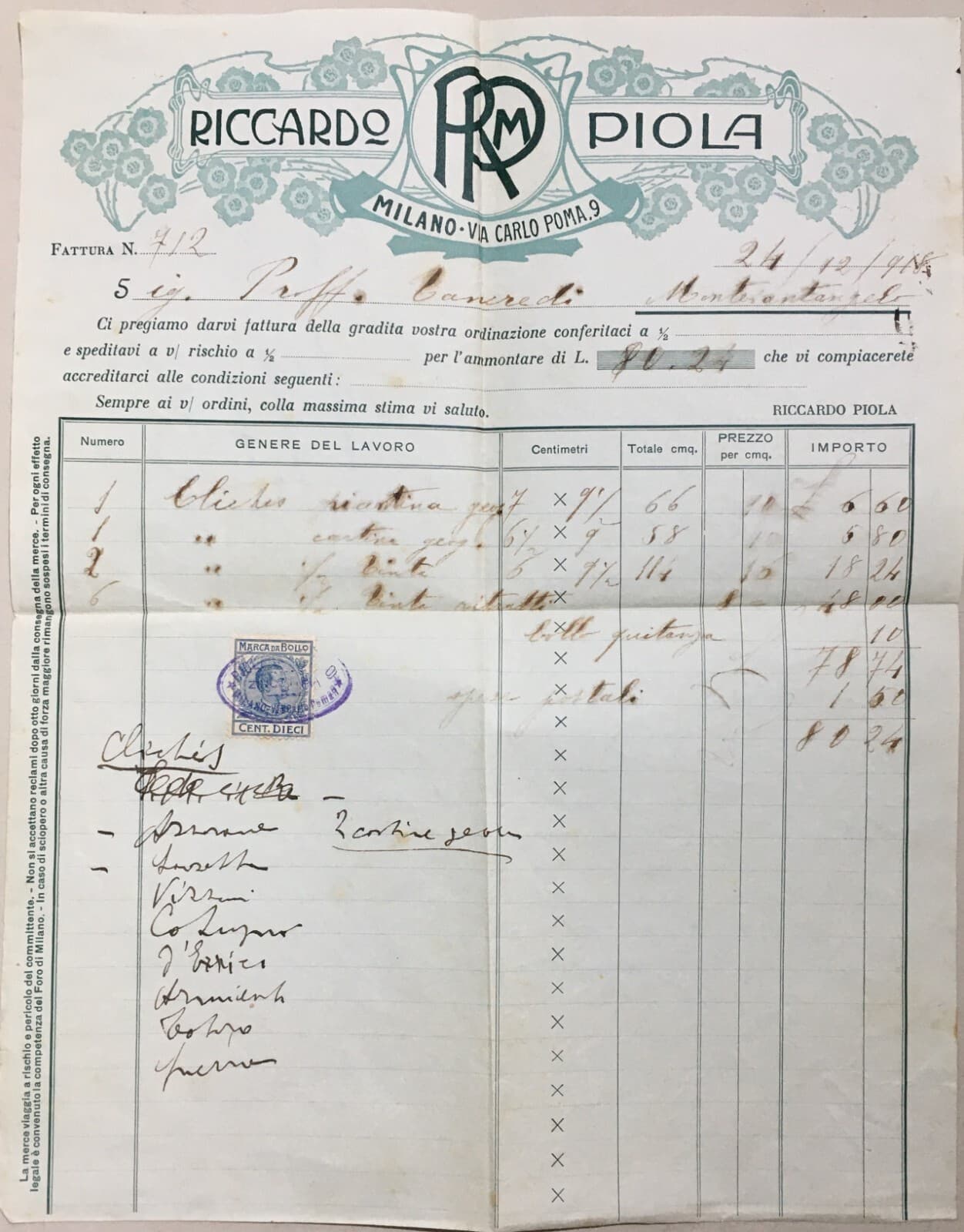 Tipografia, Stamperia E Cliché: Riccardo Piola, Milano. Pubblicitaria Per Giovanni Tancredi, Puglia