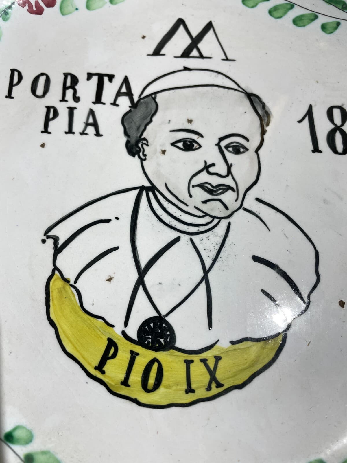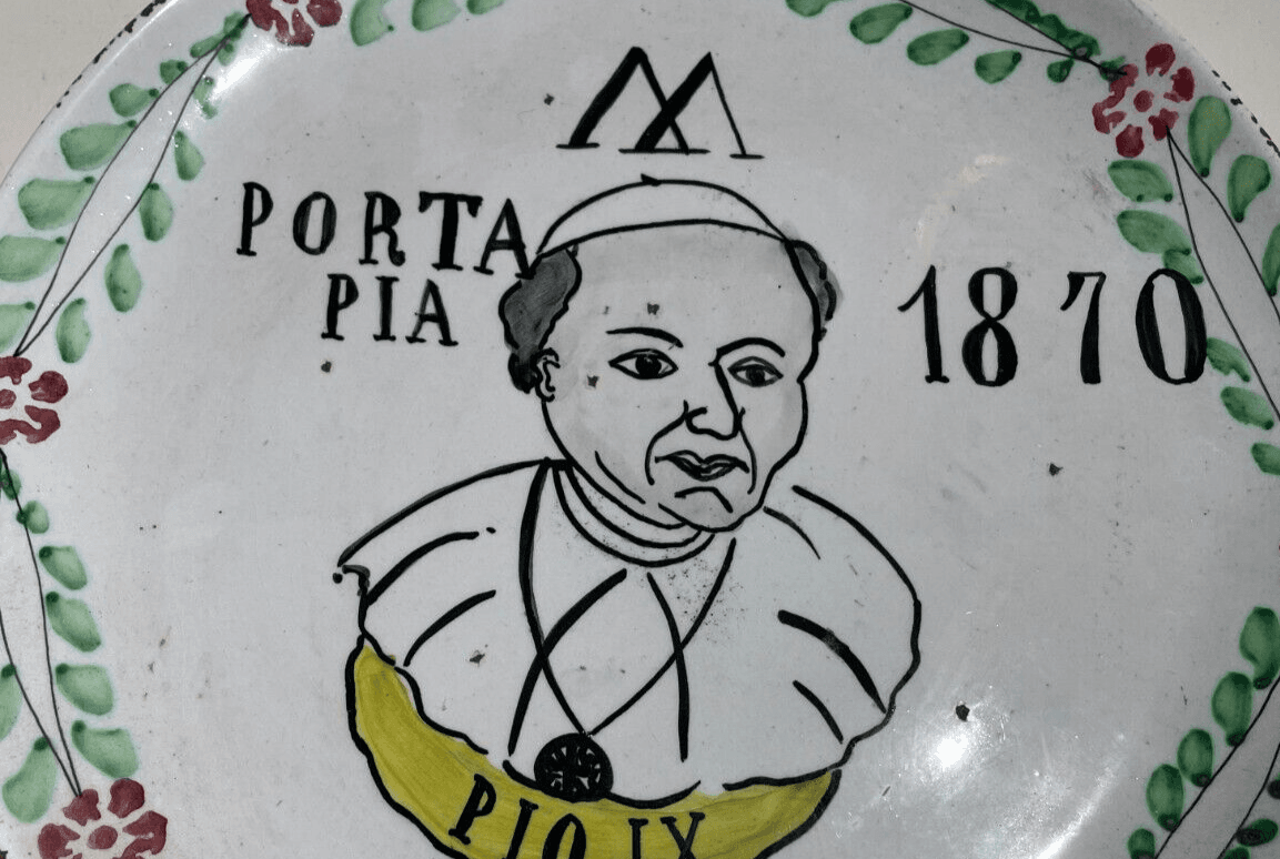 Risorgimento, Unità d'Italia. Porta Pia, 1870. Papato, Pontefice Pio IX. Raro Piatto In Ceramica