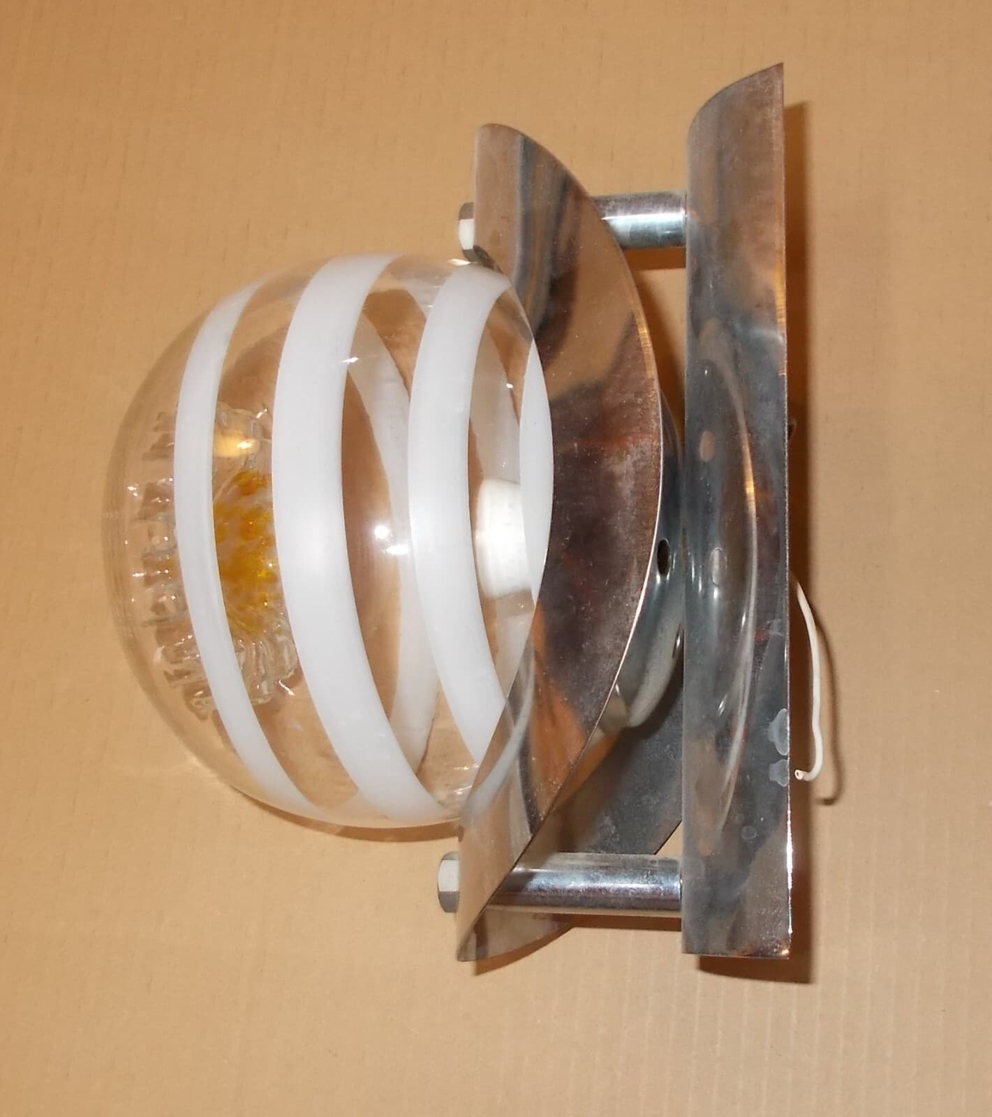 Modernariato Design Lampada Da Parete Applique In Vetro Modellato d'Epoca