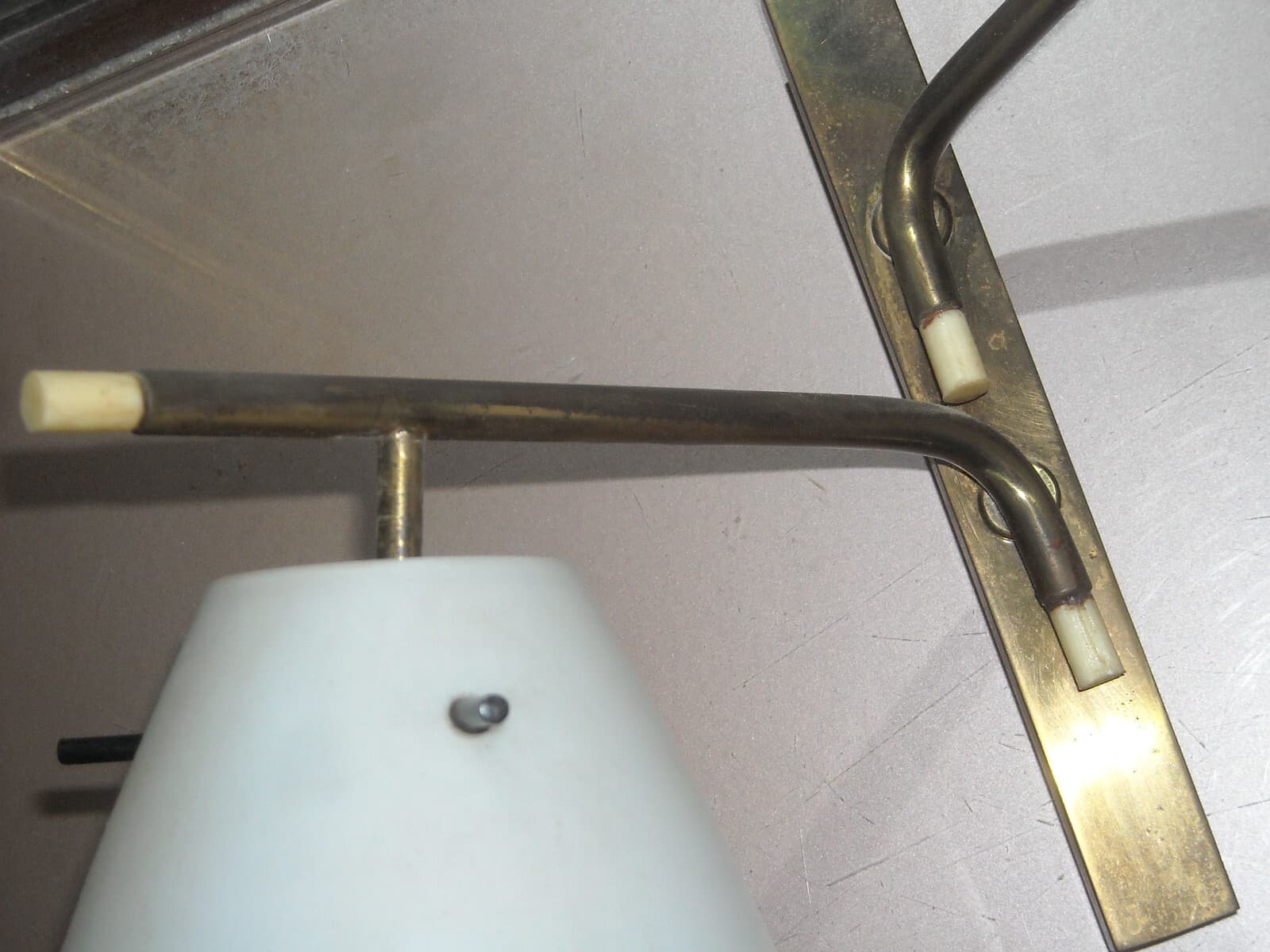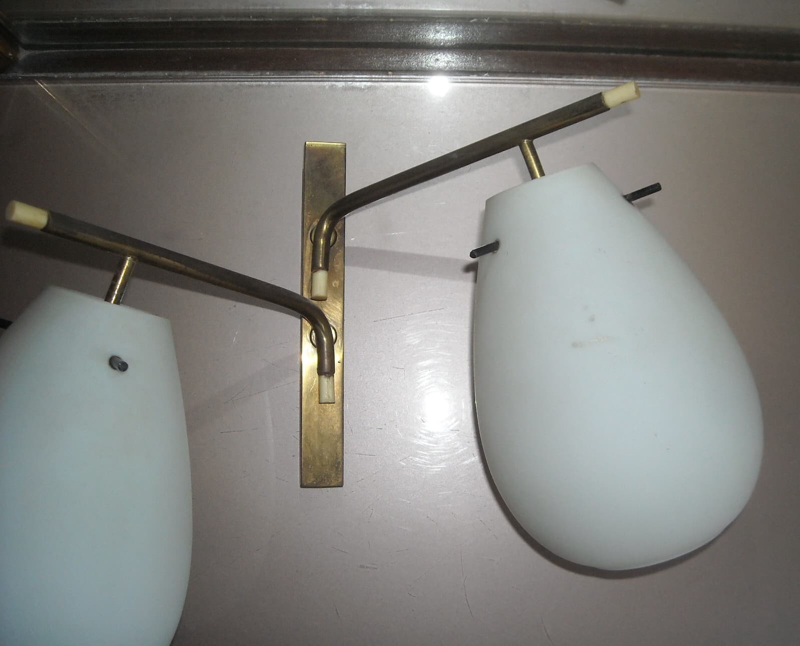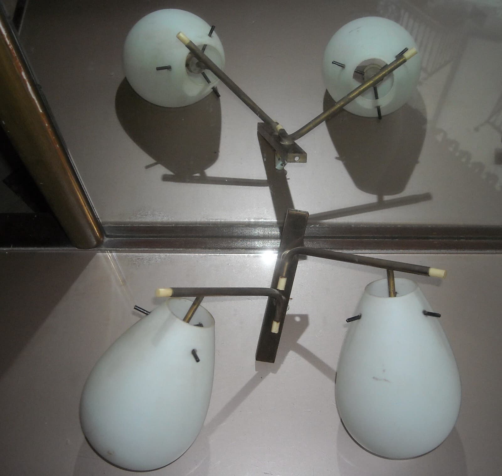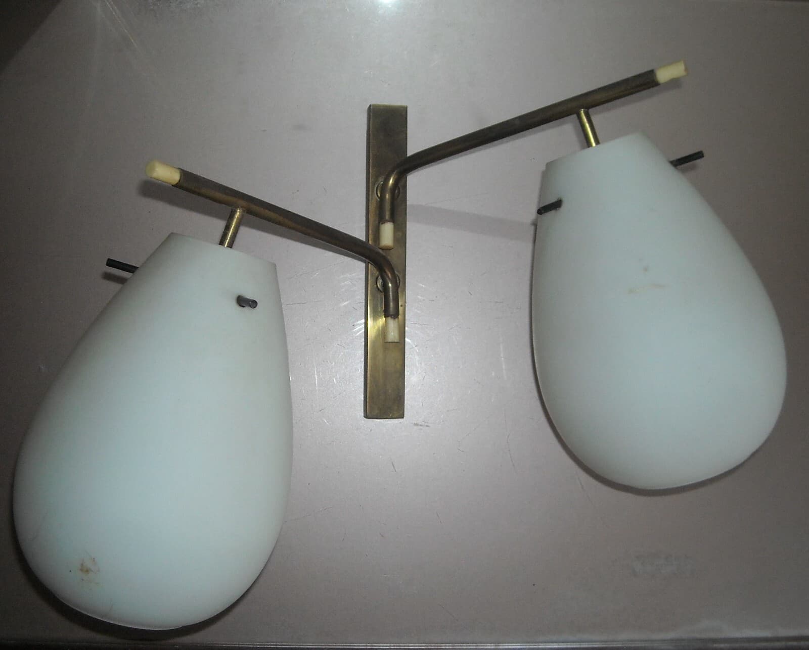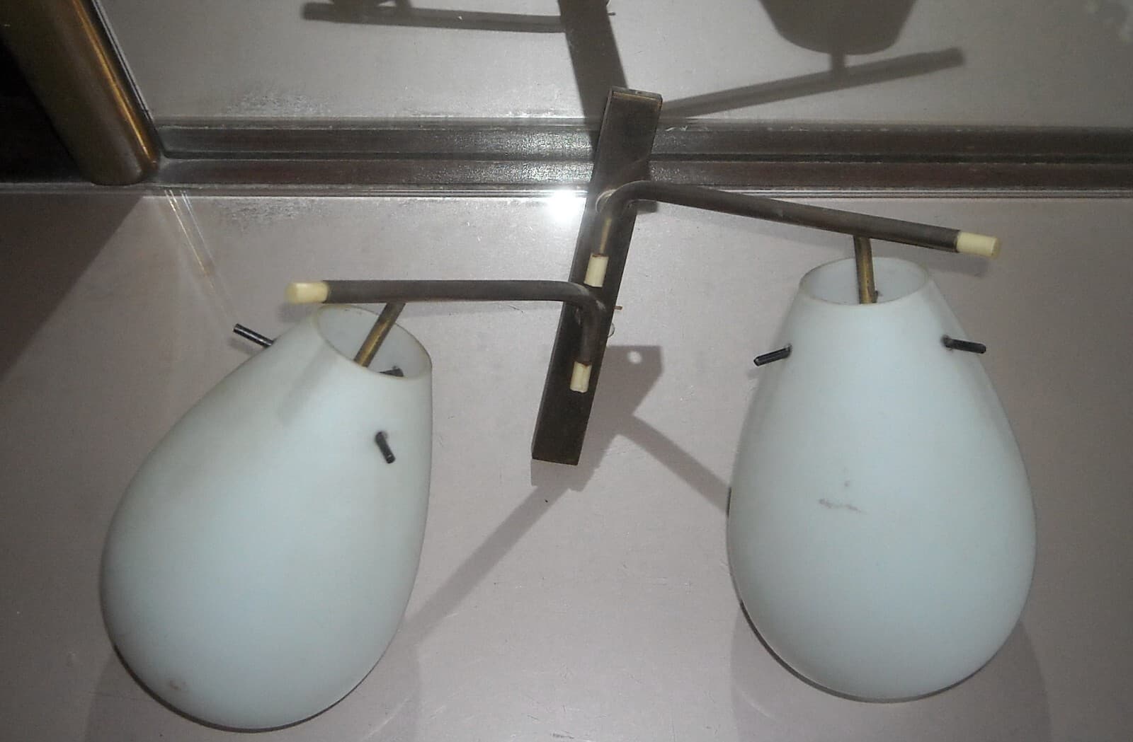 Lampada Da Parete Applique In Vetro Opalescente E Ottone, Stile Stilnovo