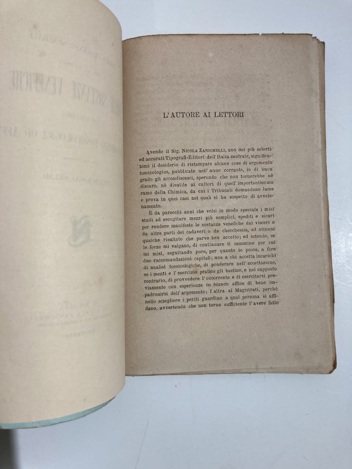Chimica, Sostanze Venefiche E Tossicologia: Veleni E Arsenico Francesco Selmi (1875)