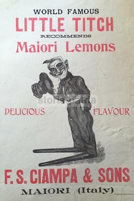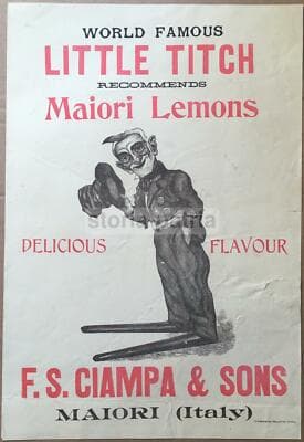Locandina Pubblicitaria d'Epoca Ciampa Maiori Little Titch Limoni Da Collezione