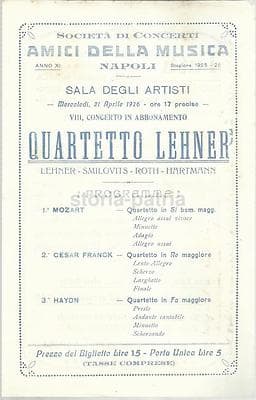 Napoli Musica, Concerto, Quartetto Lehner: Volantino Pubblicitario (1926)