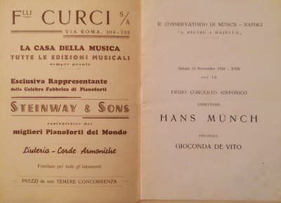 Napoli, Musica, Concerti Sinfonici: Hans Munch, Violinista Gioconda De Vito, 1939