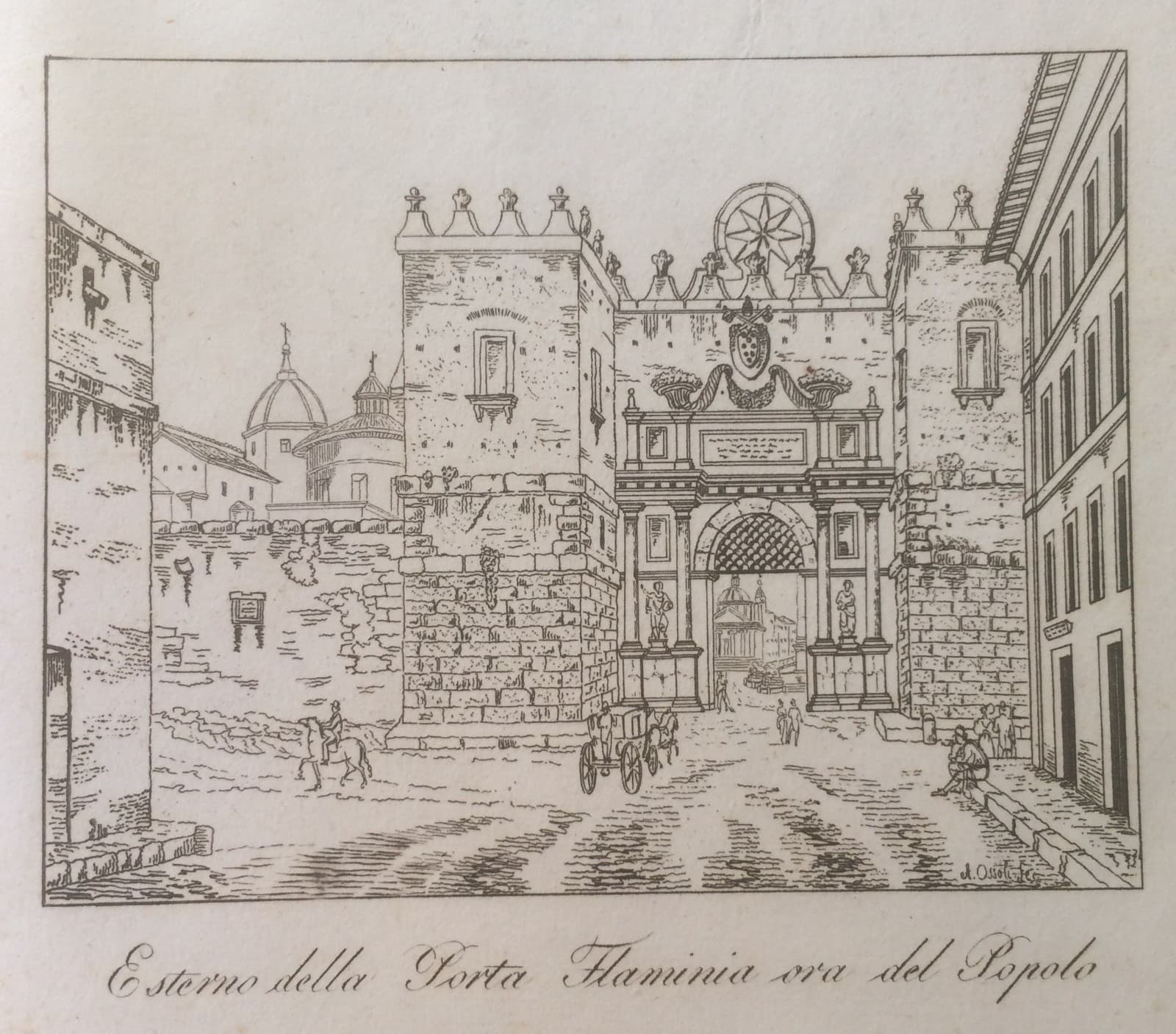 Roma, Esterno Della Porta Flaminia (ora Del Popolo). Incisione All'Acquaforte Di A. Ossoli