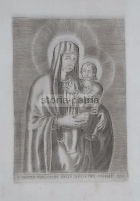 Antica Stampa Popolare Devozionale: Madonna Con Bambino, Chiesa Del Tirone, Sicilia