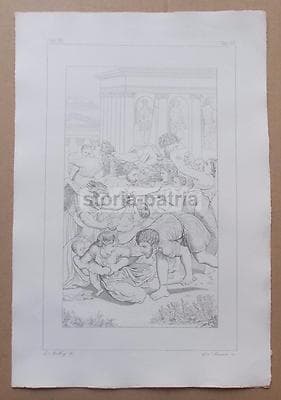 Arte Antica, Allegoria Di Scena Biblica, Artisti Ferretti, Grande Incisione Dell'Ottocento