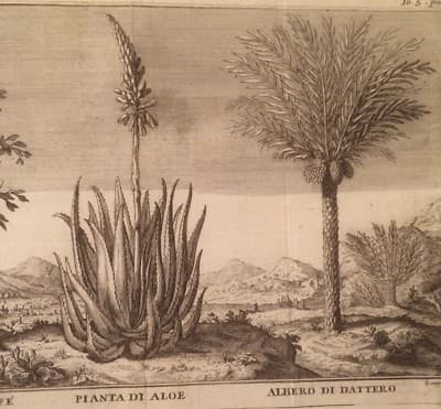 Botanica: Piante Di Caffè, Aloe E Dattero. Antica Stampa Dell'Incisore Filosi