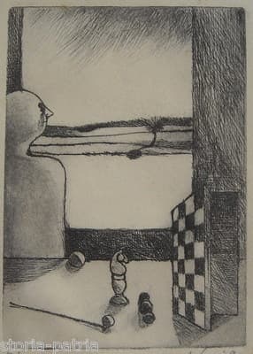 Incisione Originale Interno Con Scacchiera, Pisani, 1963