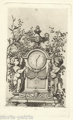 Incisione Originale Di Orologio Con Puttini, A.P. Martial, 1873