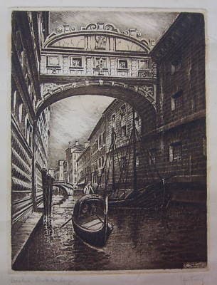 Venezia, Ponte Dei Sospiri, Gondola E Gondoliere, Festucci, Incisione d'Epoca