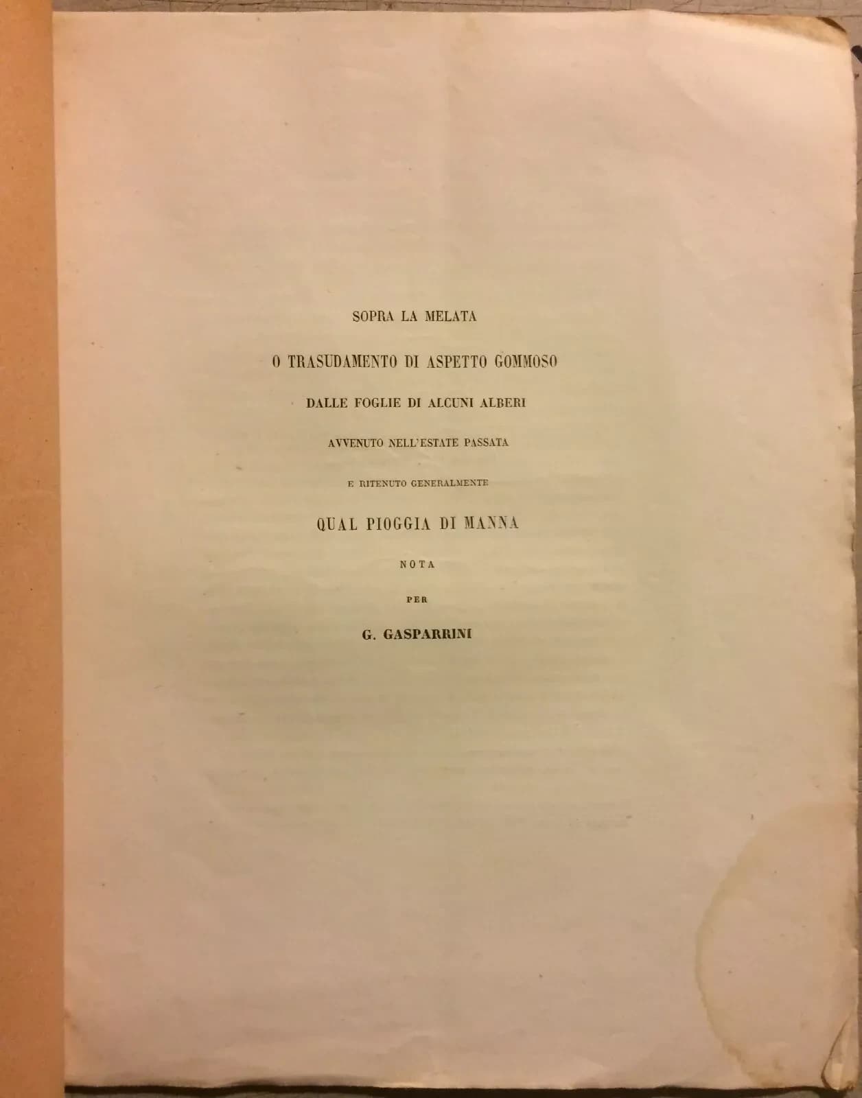 Scienze Naturali: Botanica, Melata, Pioggia Di Manna. Gasparrini, Cilento, Salerno (1863)