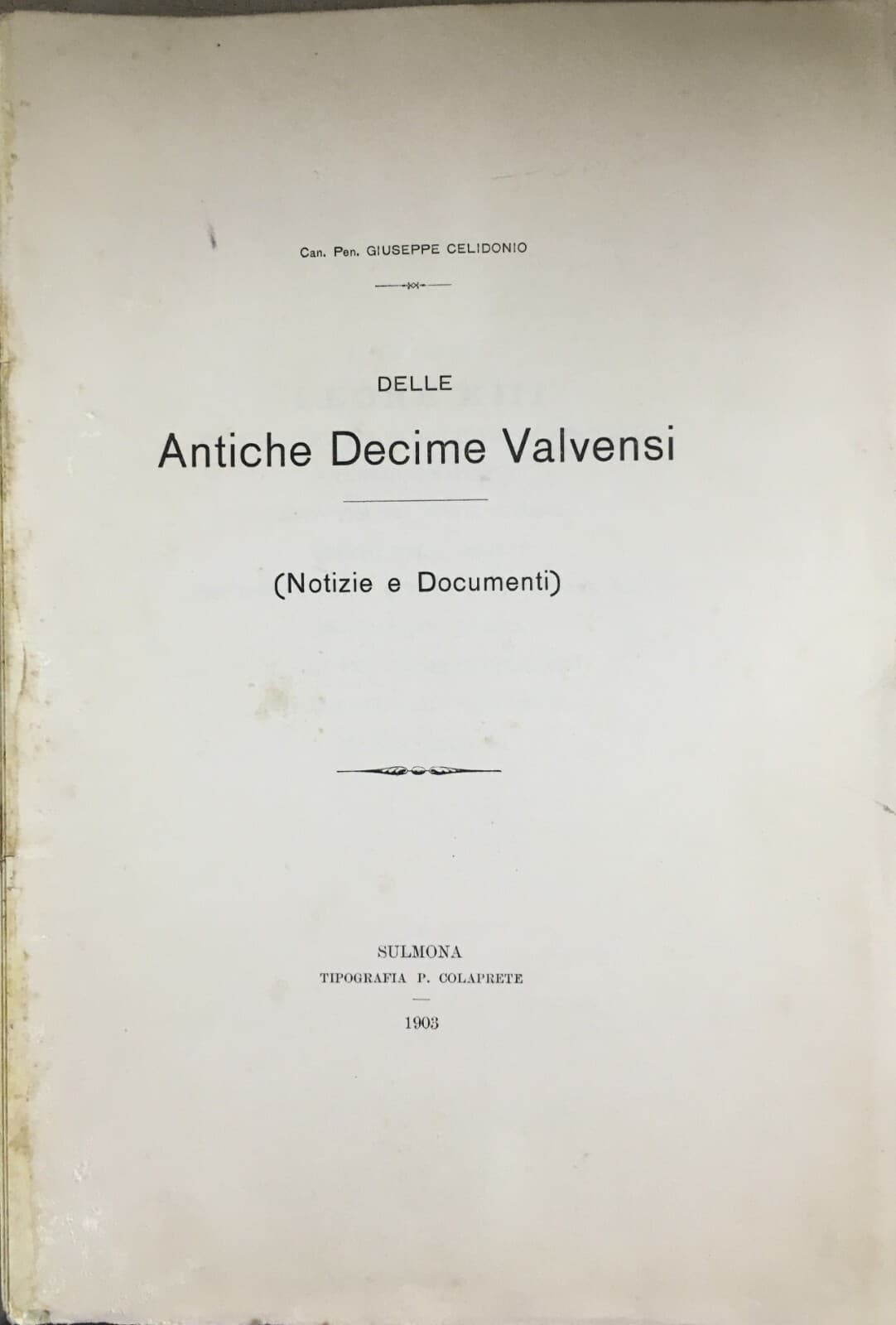Abruzzo, Valva, Corfinio, Sulmona: Tassazione Chiesa, Decime Valvensi, Celidonio, 1903