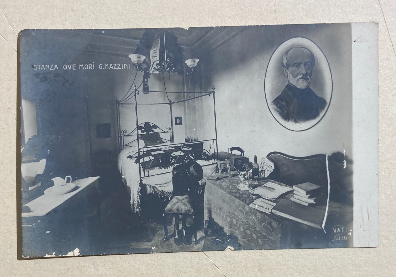 Risorgimento, Massoneria, Mazzini: Fotocartolina Del Ritratto E Della Stanza Del Decesso