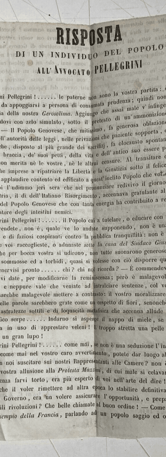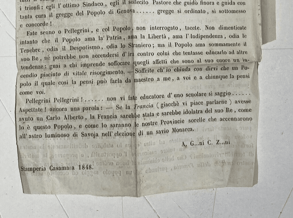 Risorgimento Liguria Genova Casamara Antico Foglio Volante Pellegrini 1848