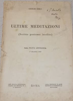 Giorgio Sorel, Ultime Meditazioni. Roma, Nuova Antologia, 1928. Dedica Autografa Di Missiroli Ad Ansaldo.