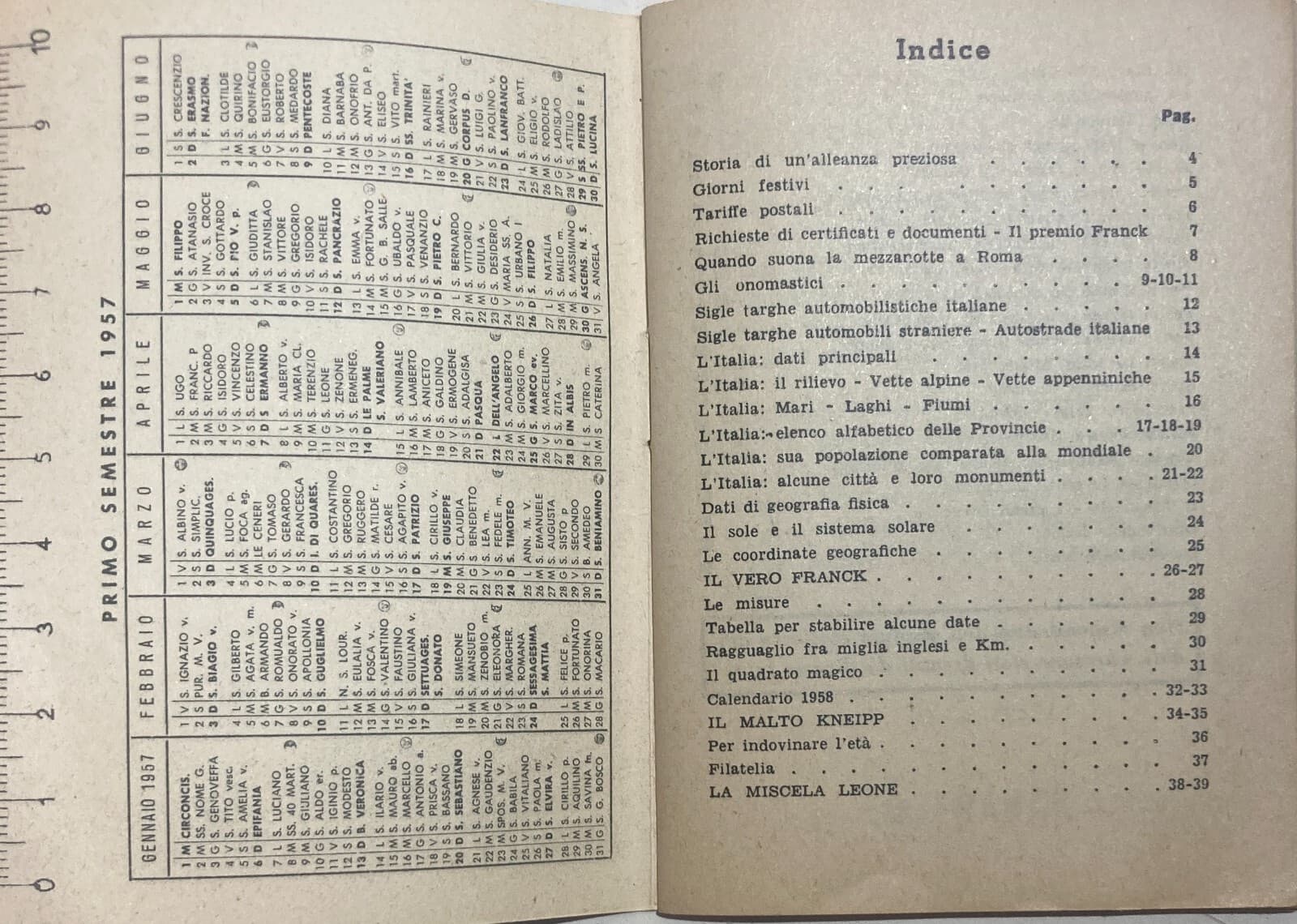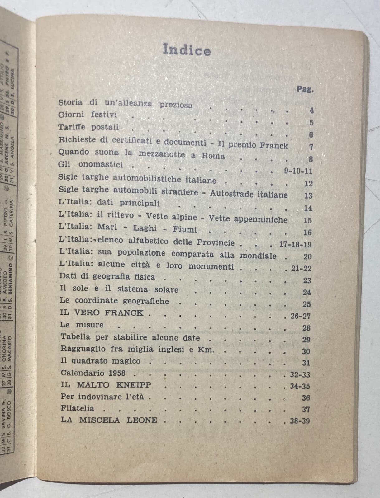 Cucina E Caffè: Vademecum Franck, Calendario 1957, Miscela Leone, Malto Kneipp