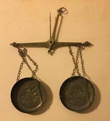 Farmacia, Numismatica E Oreficeria: Antica Bilancia Con Piattini Punzonati In Ottone