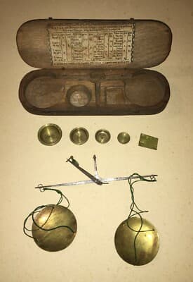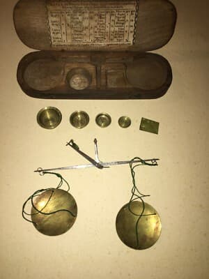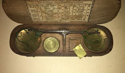 Oreficeria, Numismatica, Farmacia, Antica Bilancia Con Astuccio E Pesi
