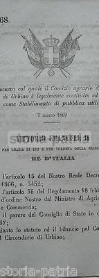 Regio Decreto Comizio Agrario Urbino E Pesaro, 1869