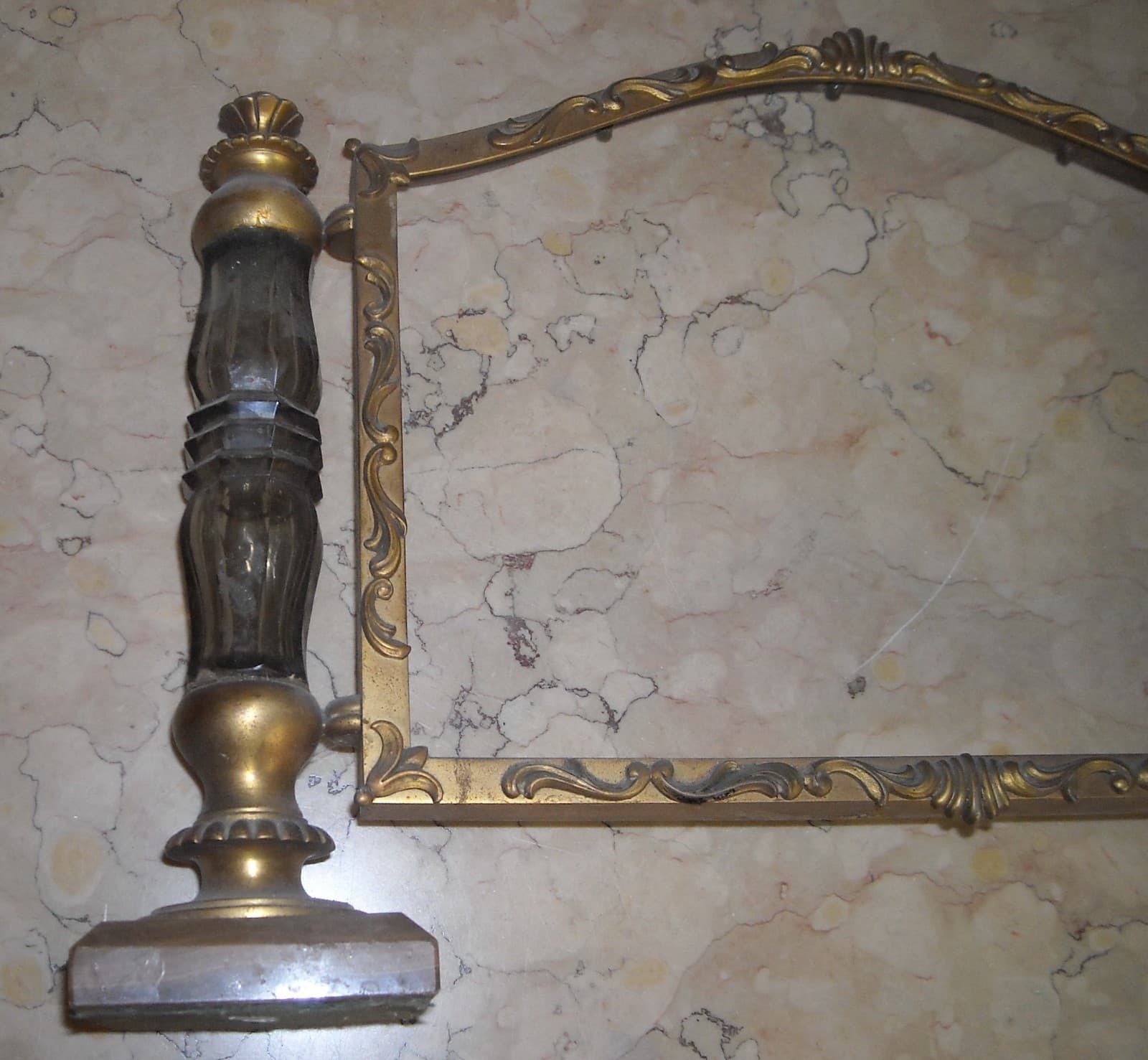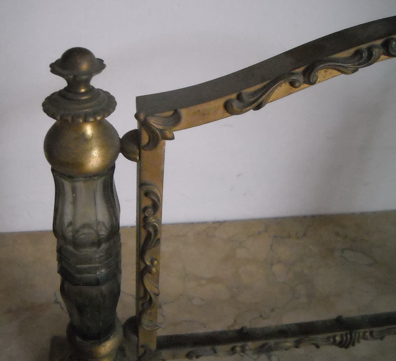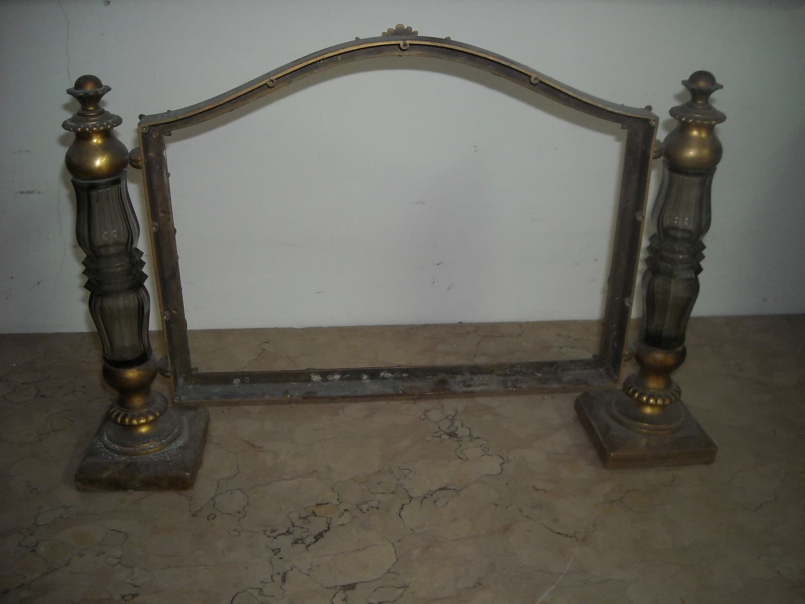 Cornice d'Epoca In Ottone Dorato Con Inserti In Vetro E Basi In Marmo