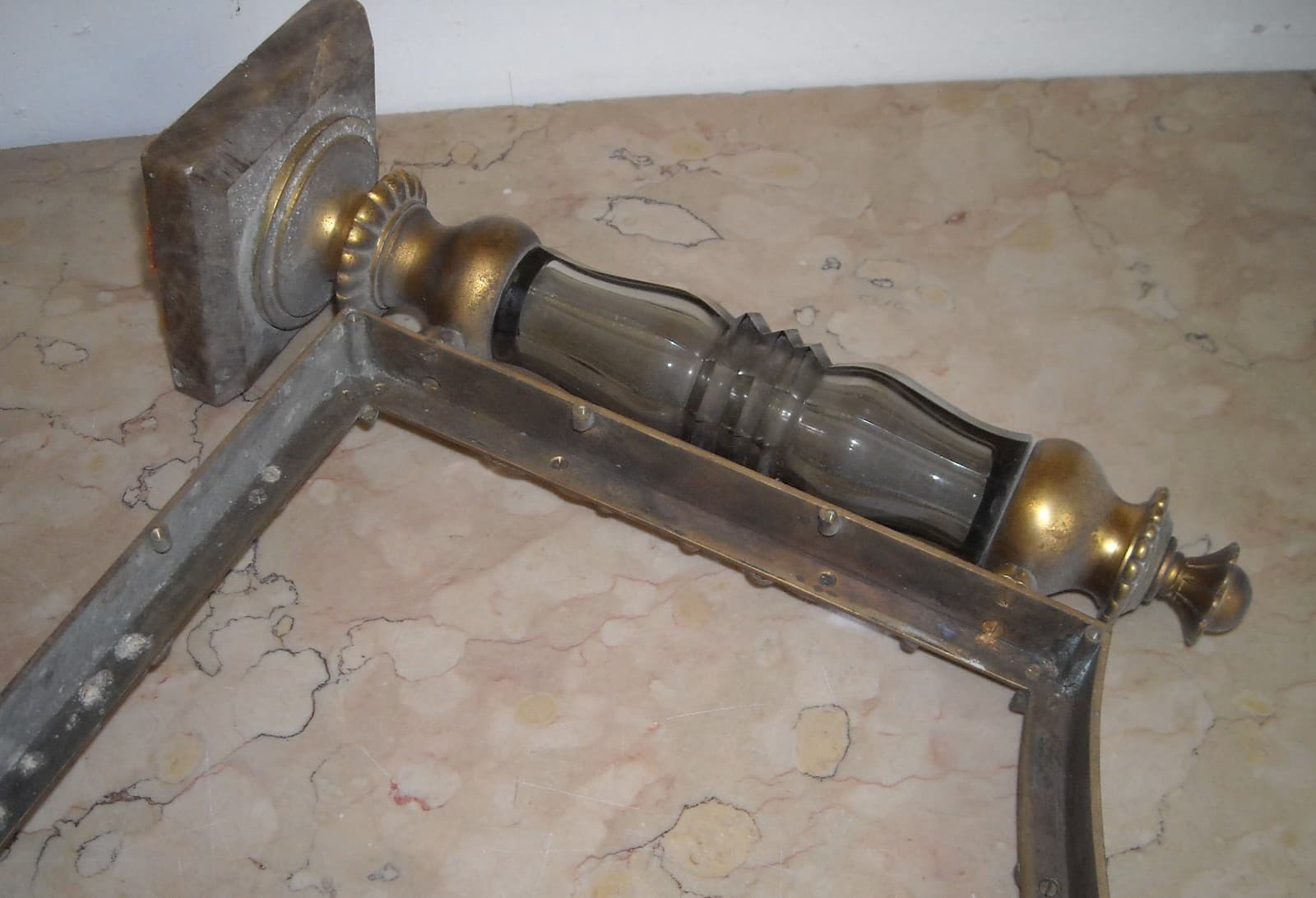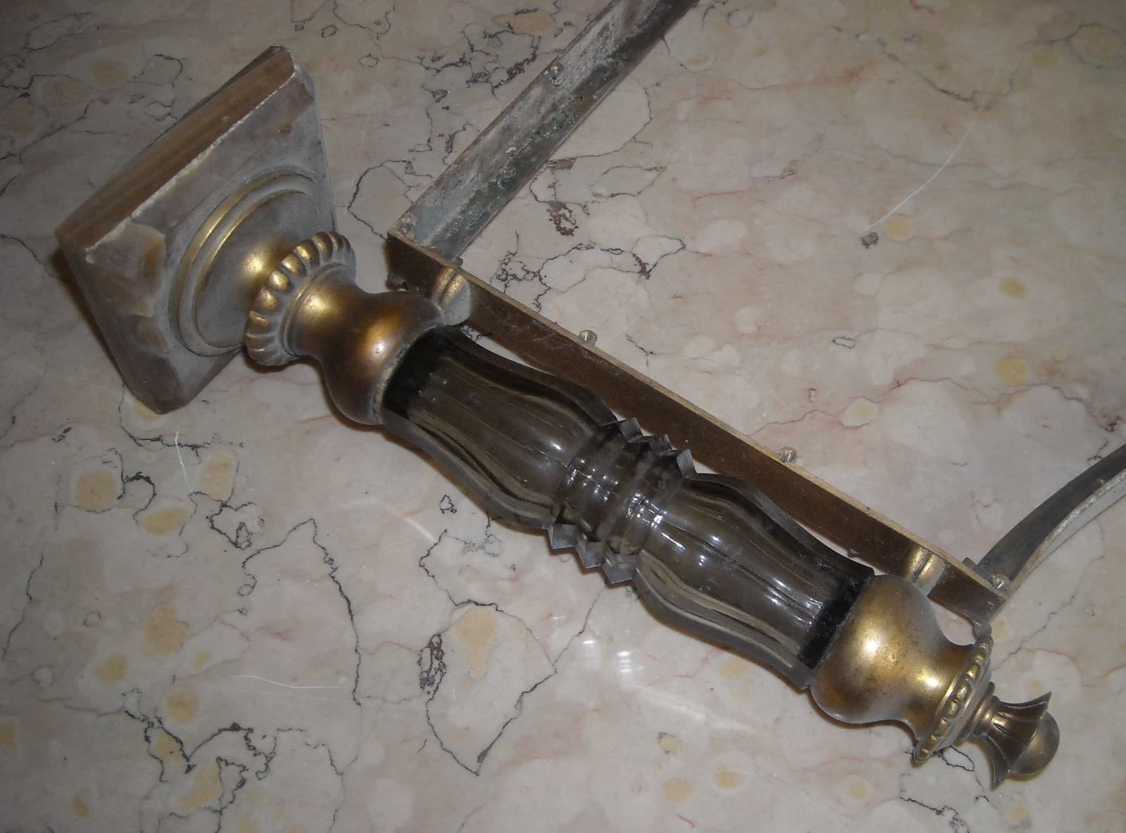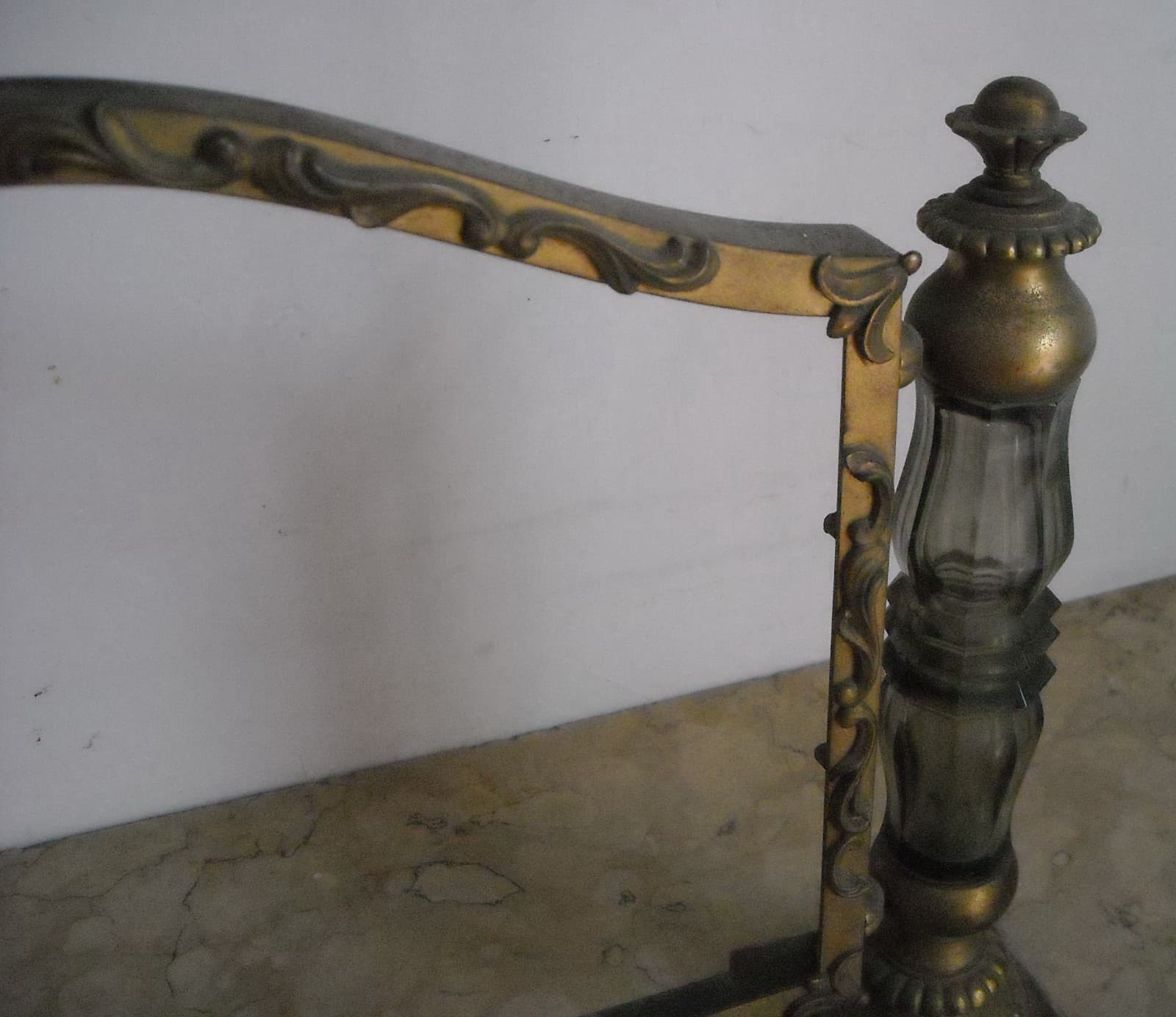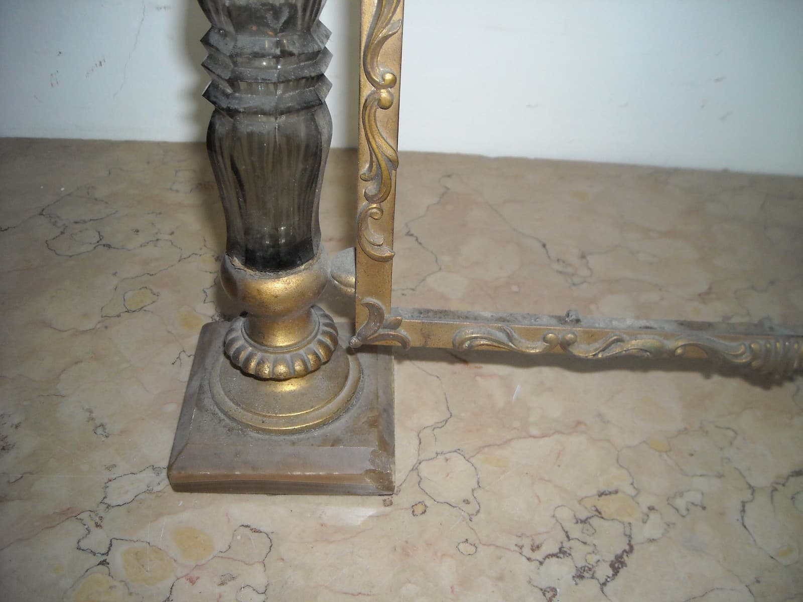 Cornice d'Epoca In Ottone Dorato Con Inserti In Vetro E Basi In Marmo