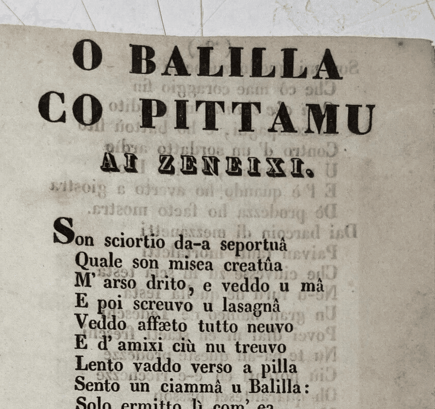 Risorgimento, Liguria, Genova. Tipografia Dagnino: O Balilla Co Pittamu, Dialetto Genovese, Ottocento
