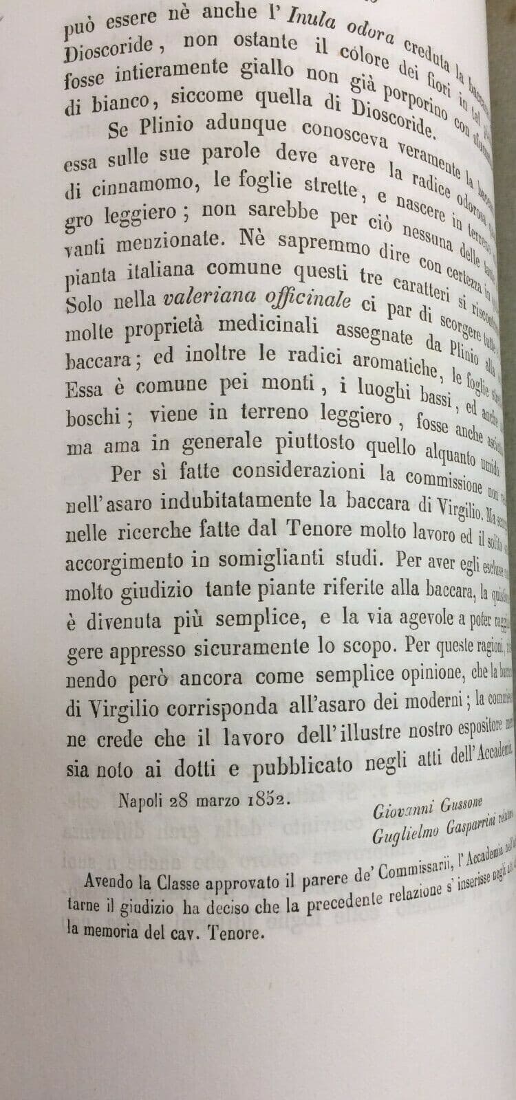 Botanica: Erba Baccara. Tenore, Gussone, Gasparrini. Flora Virgiliana, 1852
