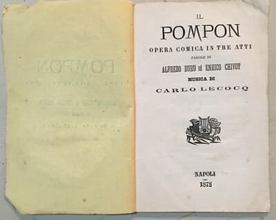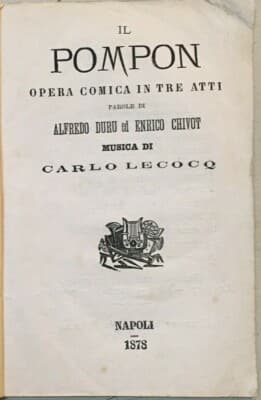 Il Pompon: Opera Comica In Tre Atti Duru, Chivot, Lecocq (Napoli, 1878)