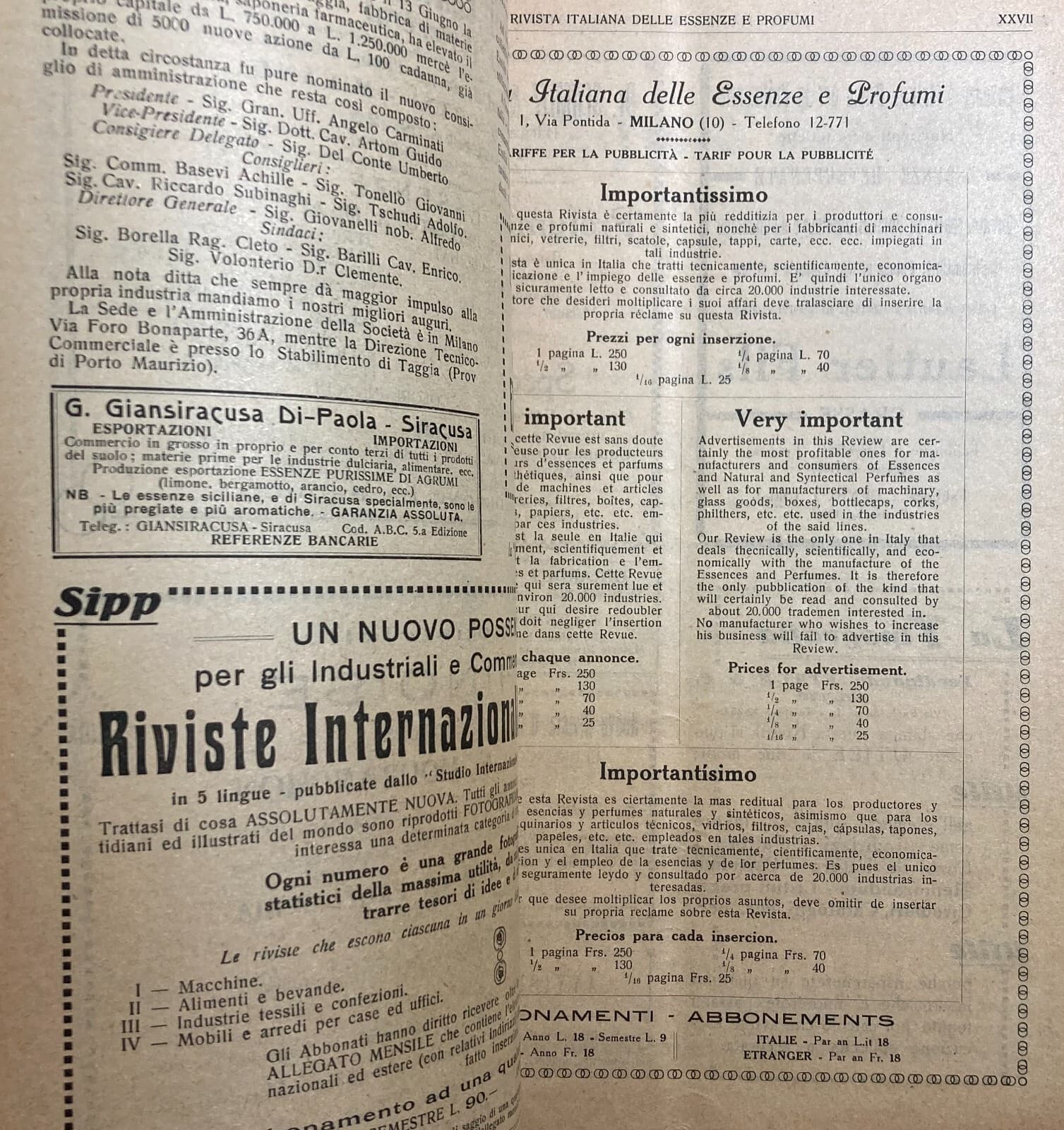 Rivista Italiana Delle Essenze E Profumi: Periodico Illustrato Di Chimica E Profumeria, 1921