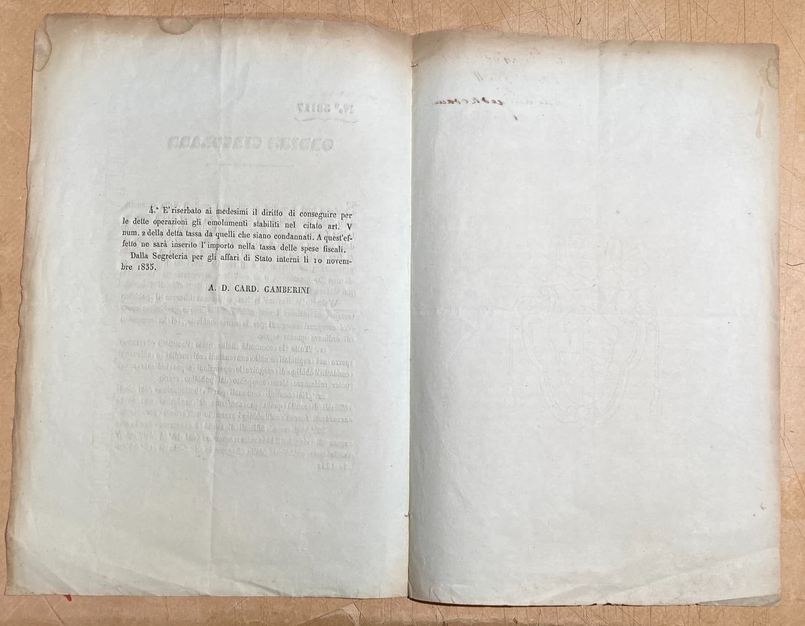 Medicina, Sanità E Regolamentazione Medica Nel 1835: Foglio Volante Del Cardinale Gamberini Su Carta Miliani