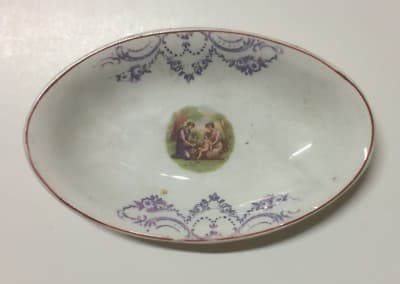 Piatto Ovale In Porcellana Con Decoro Floreale Liberty E Scena Mitologica