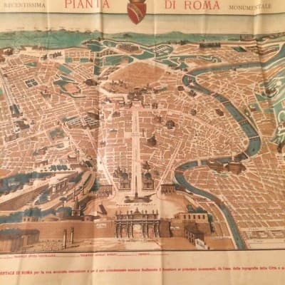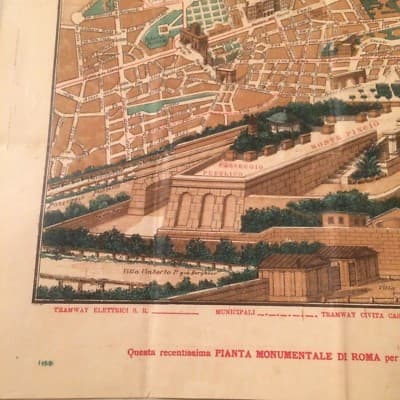Roma Imperiale: Enorme Mappa Topografica Con Monumenti, Tramvie, Tevere E Viabilità