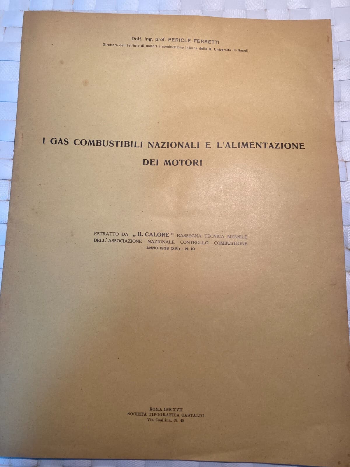 I Gas Combustibili Nazionali E L'Alimentazione Dei Motori (Pericle Ferretti, 1938)
