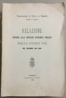 Marche, Camerino: Opere Pie, Congregazione Di Carità, Bilanci, Asili, Monte Di Pegni, 1898